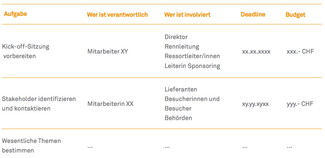 - Einen Zeit- sowie Aktionsplan mit den Aufgaben und Verantwortlichkeiten erstellen